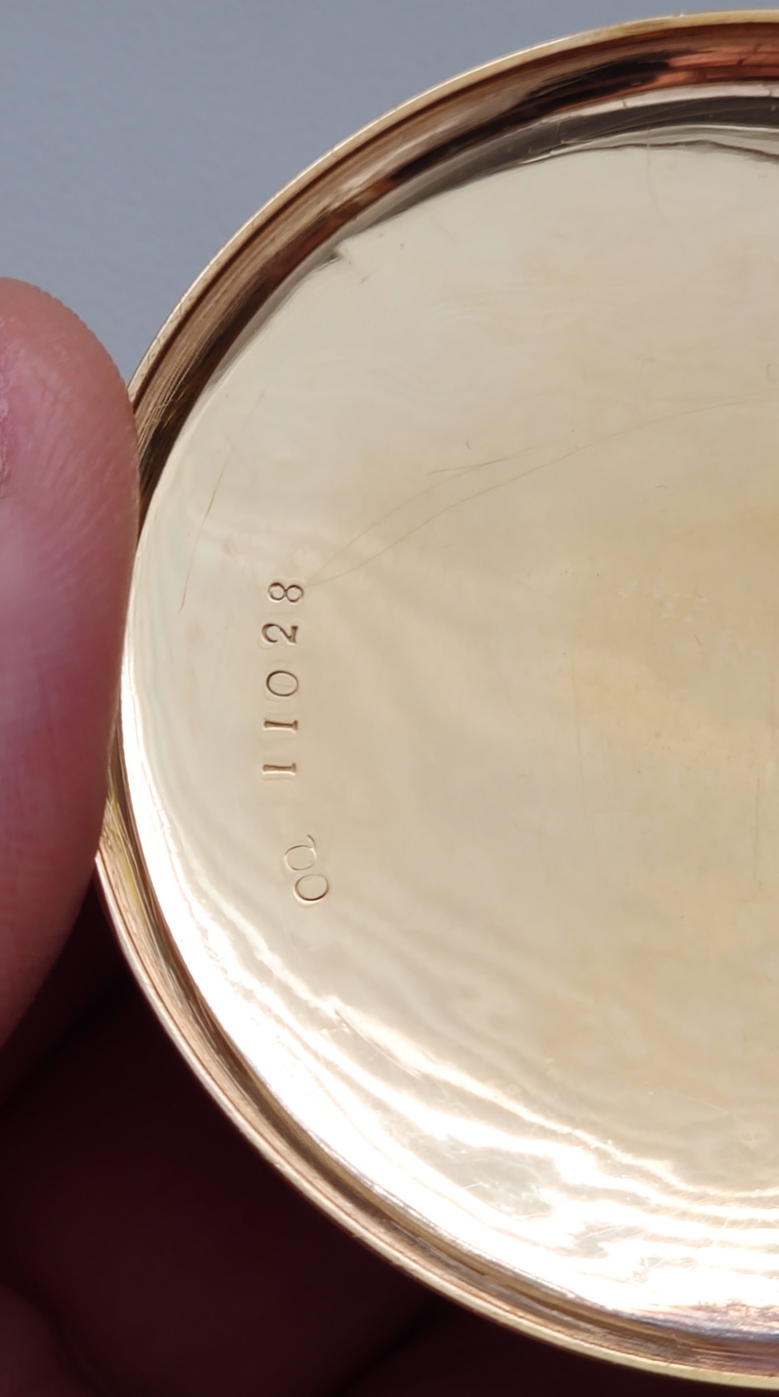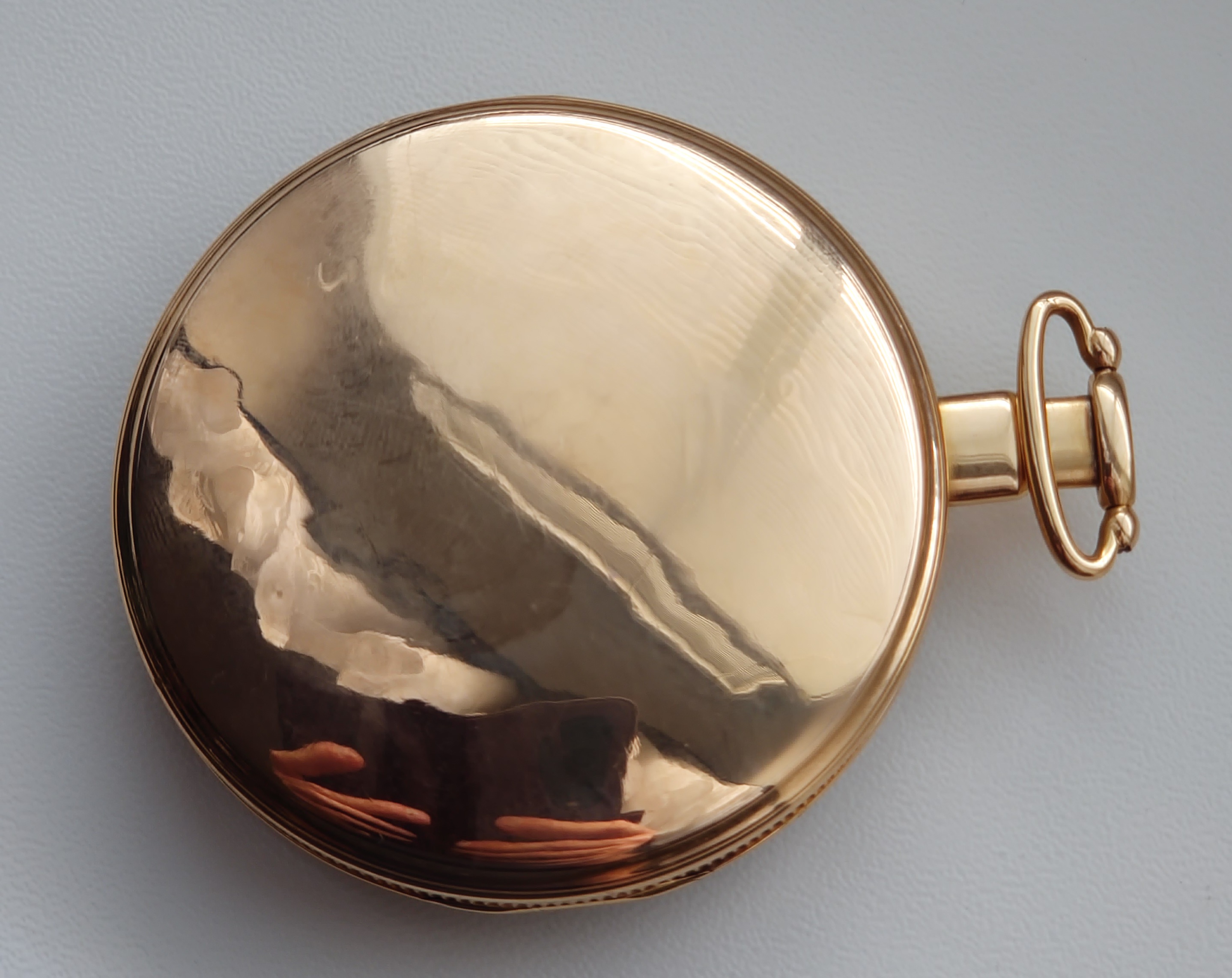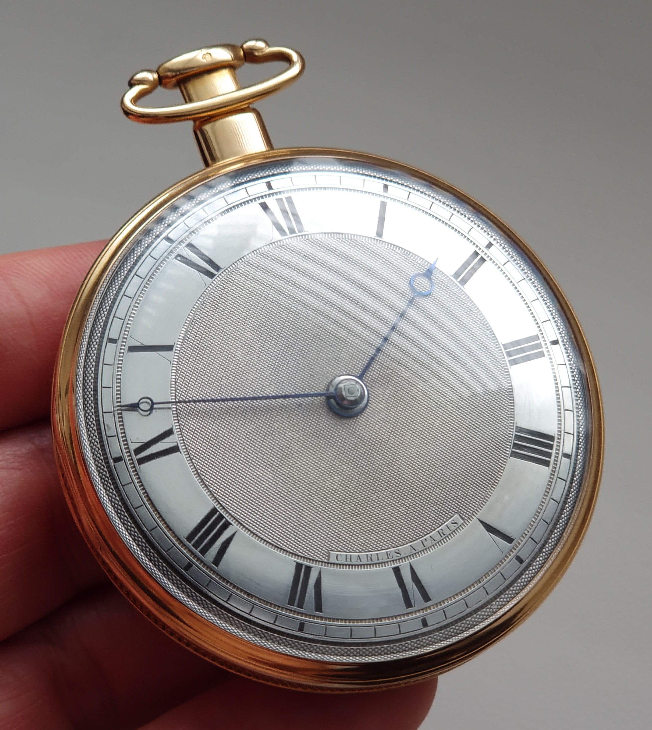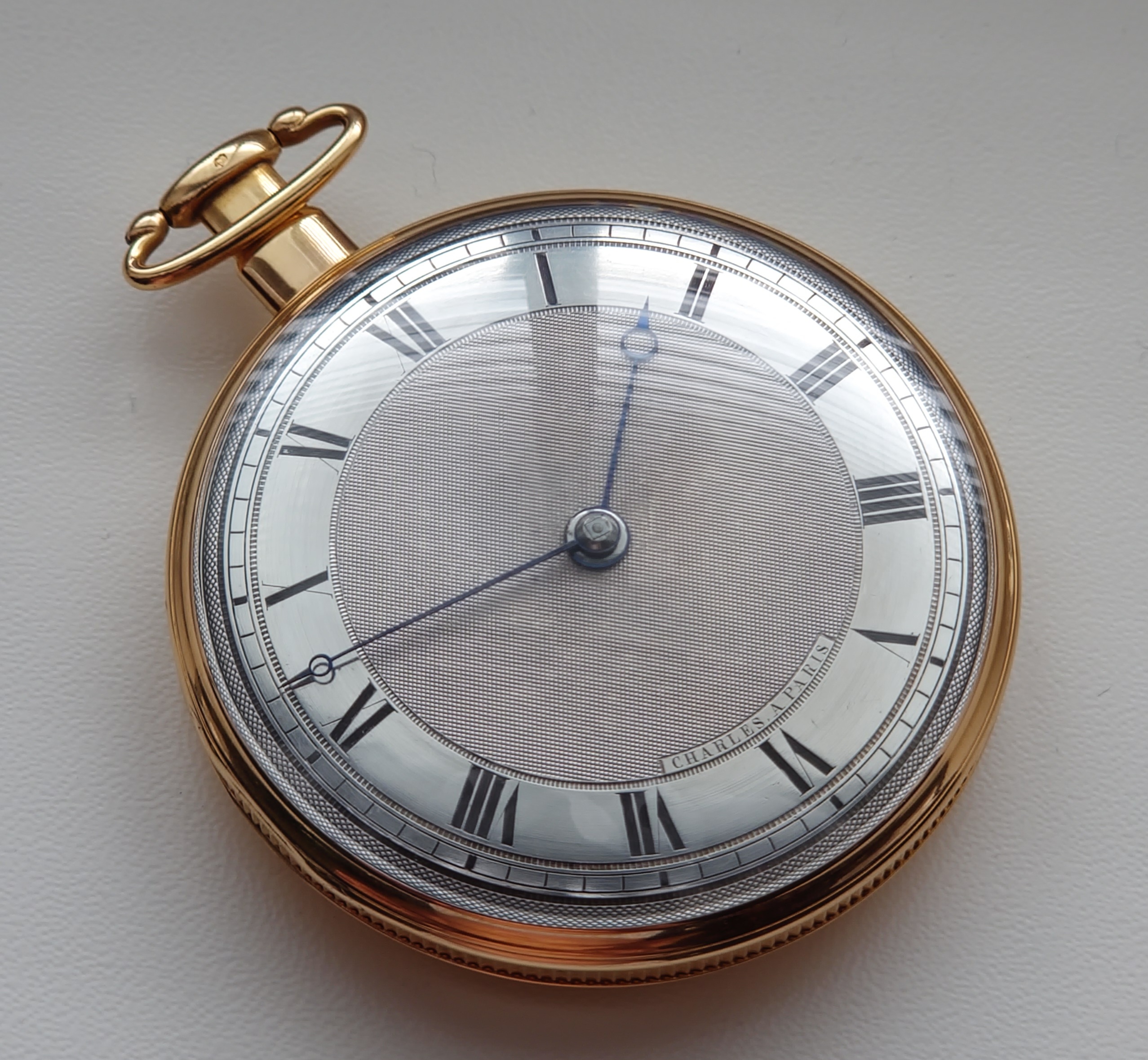 Pouzdro je velmi masivní a těžké, vyrobené z 18karátového zlata, s hladkou zadní plochou a jemně vroubkovaným (rádlovaným) bokem. Za pozornost stojí krásný, plochý a masivní zlatý krček. Průměr pouzdra činí Ø 60 mm, celková váha 134 g. Hodinky jsou signovány: CHARLES A PARIS.