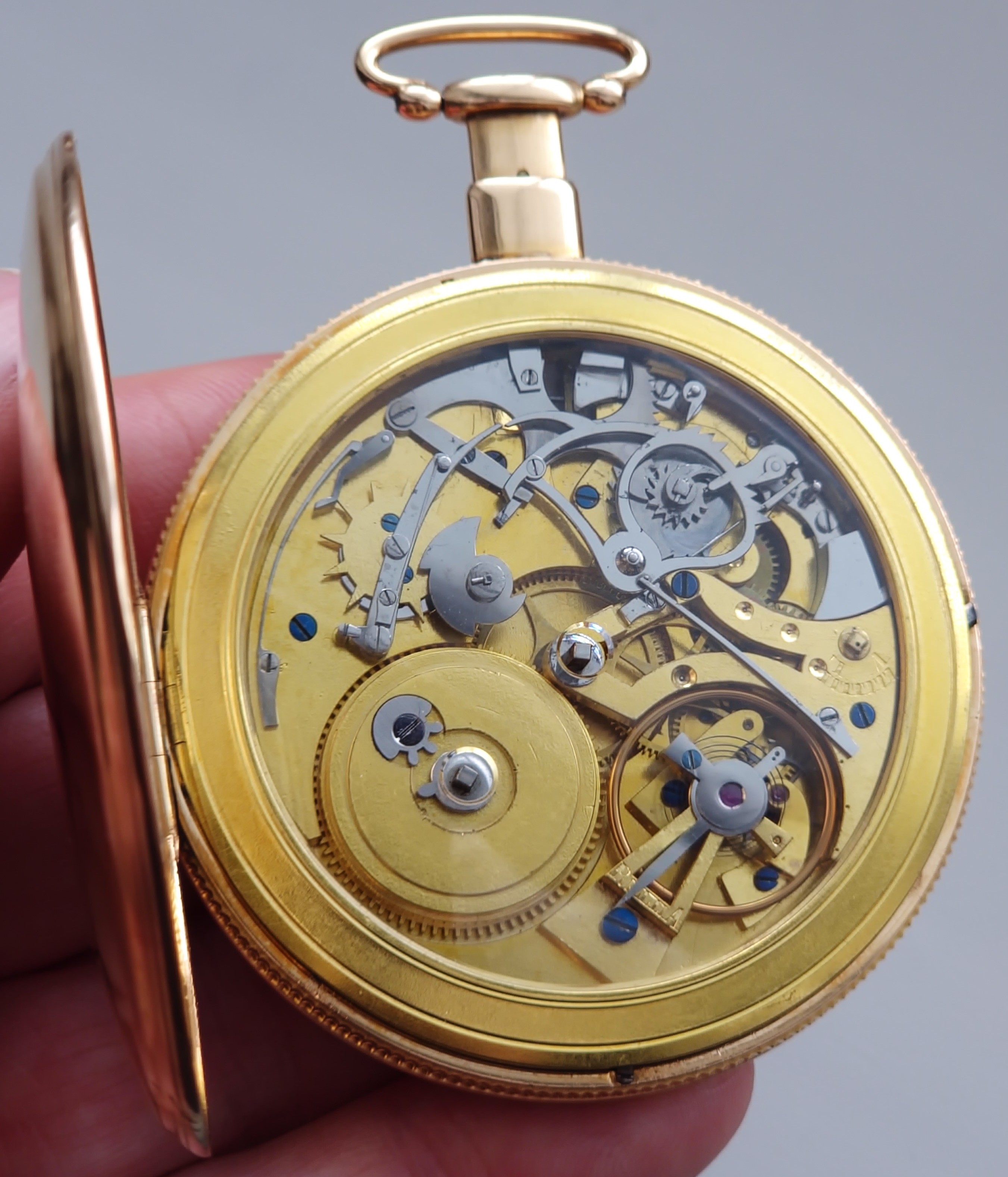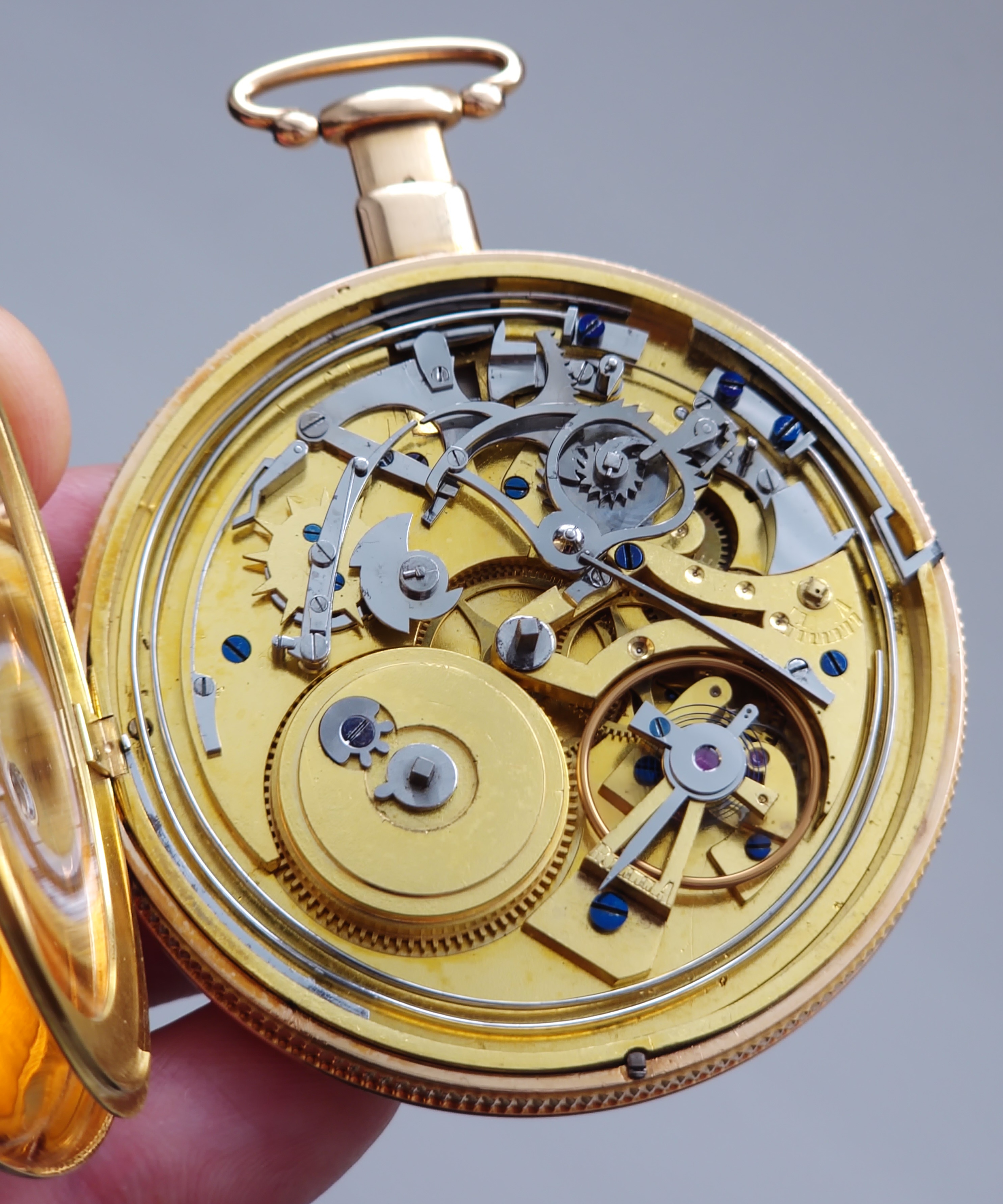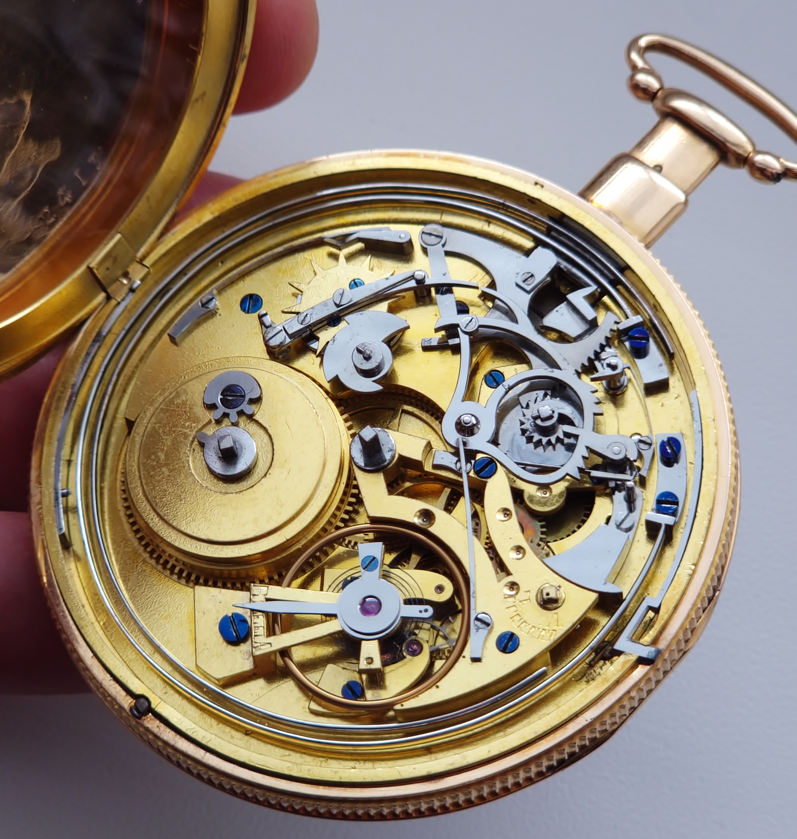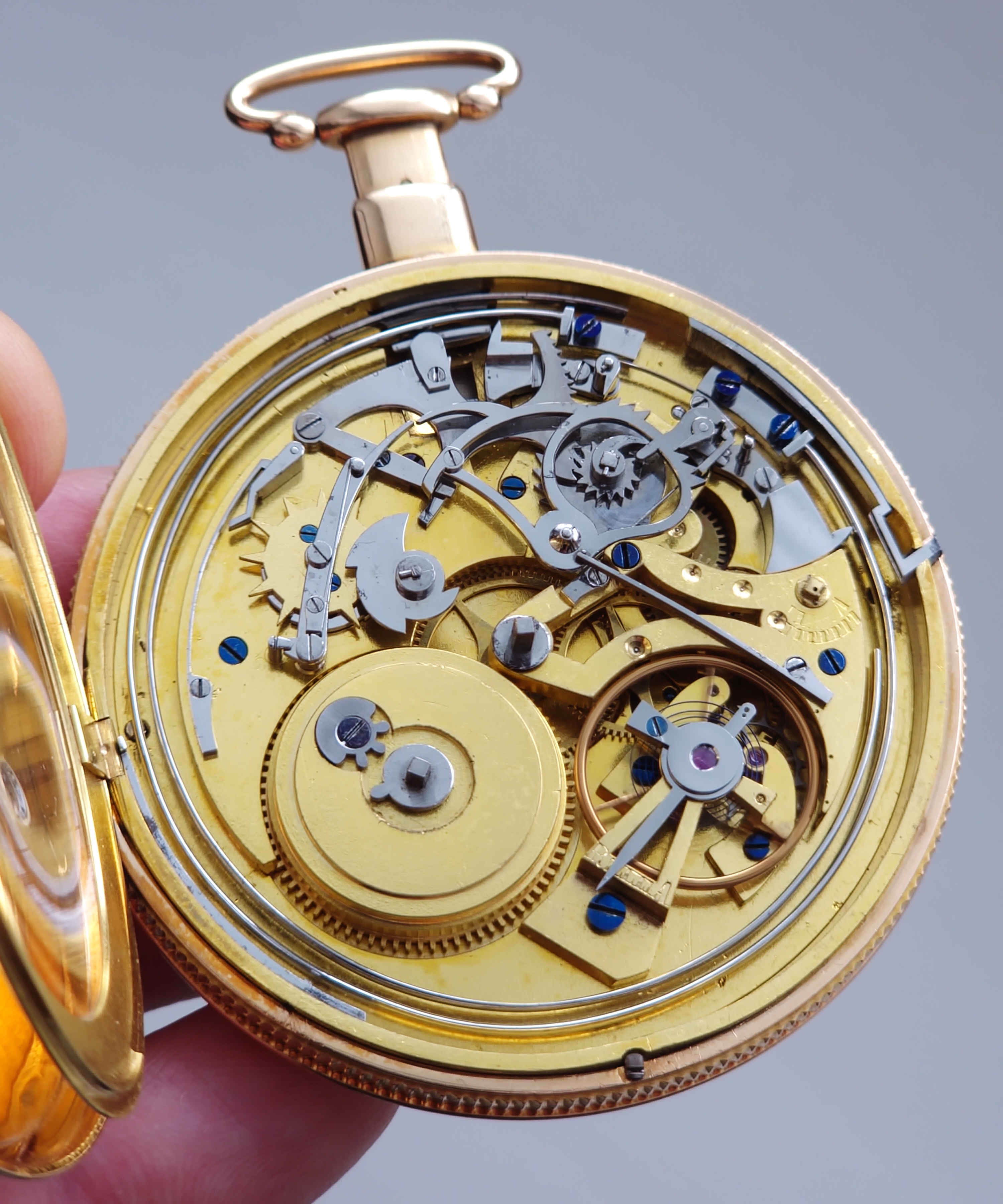 Hodinky jsou empírového provedení a pocházejí z období kolem let 1800–1820. Jsou plně funkční, spolehlivě jdoucí a vždy odbíjejí správný časový údaj, čas drží velmi dobře. Čtvrťové bití je řešeno dvěma kladívky do dvou spirál, bití má čistý a lahodný zvuk, bicí spirály jsou pěkně sladěné. Hodinky jsou celé v původním a originálním stavu.