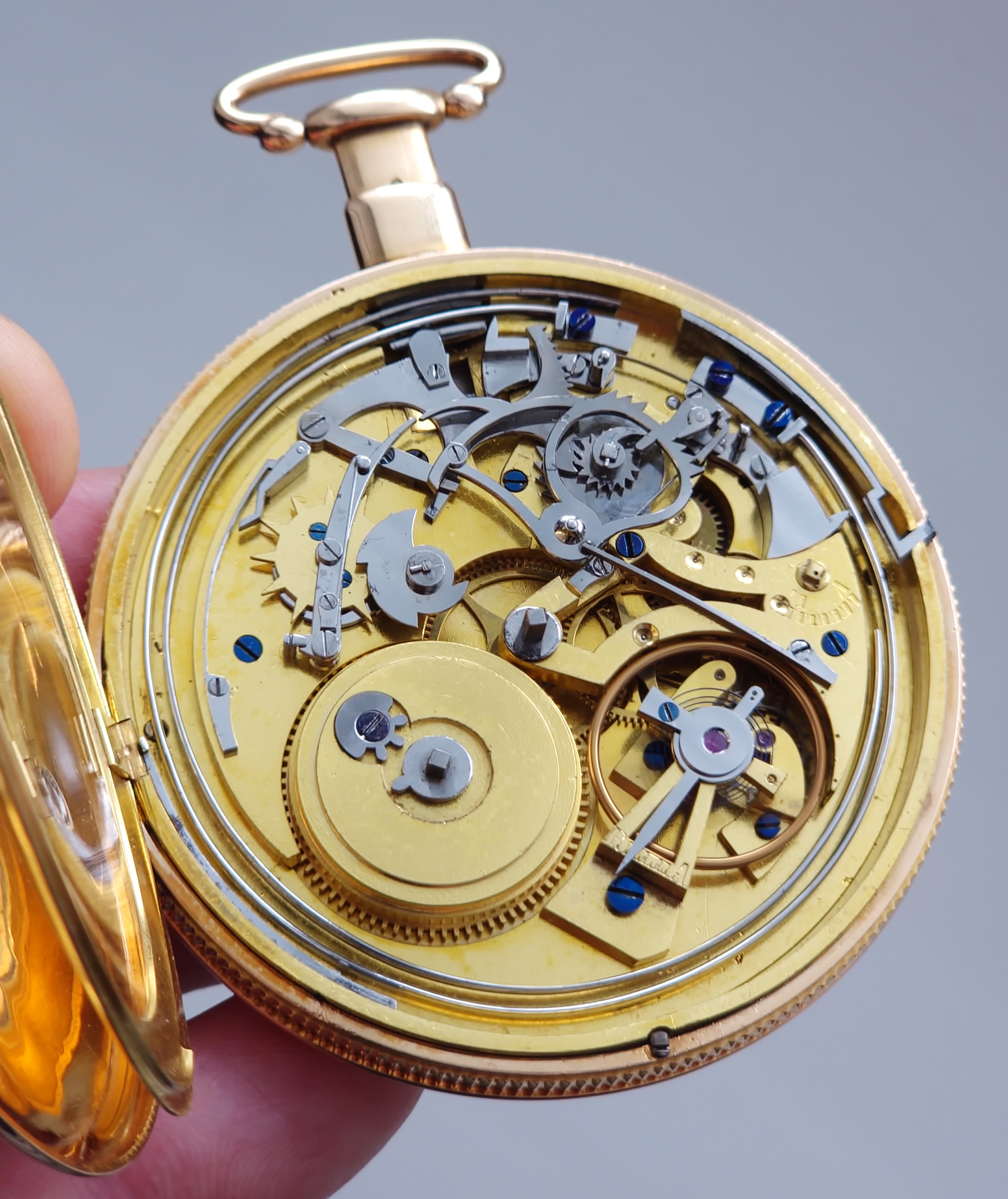 Velké a těžké francouzské empírové zlaté pánské bicí hodinky.