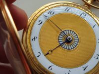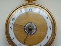 Vnitřní prachové víko jako vždy u tohoto empírového provedení hodinek je součástí stroje. Je vyrobeno ze stejného materiálu jako stroj, v ohni zlacené a je shodně se strojem signováno. Prachové víko pěkně samo odskočí po odjištění západky.